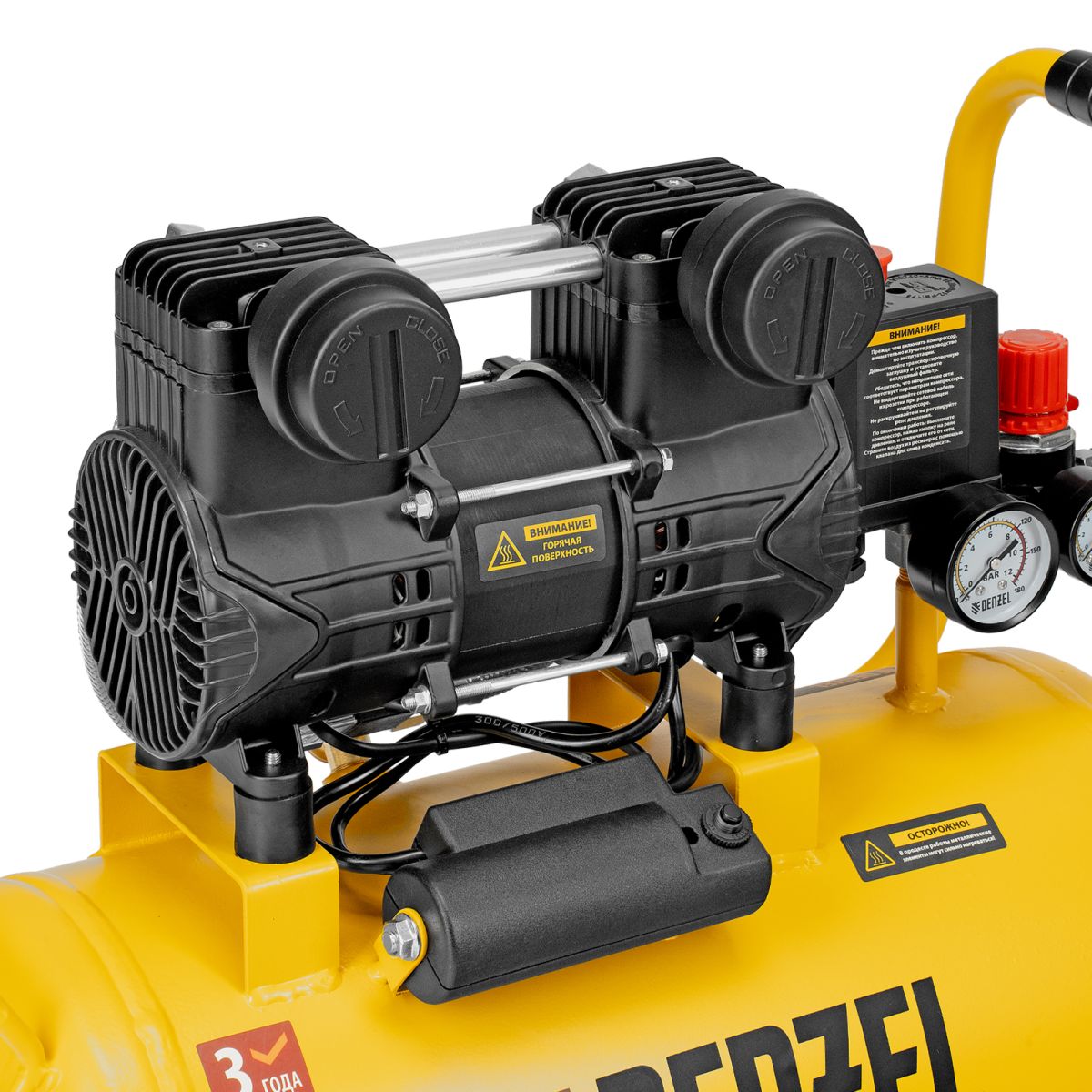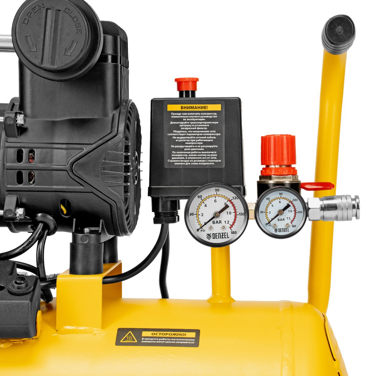 Безмасляный малошумный компрессор Denzel DLP-950/24 58142 мощностью 950 Вт и производительностью 170 л/мин, с ресивером объемом 24 л, оснащен двигателем со скоростью вращения 2850 об/мин. Предназначен для обеспечения пневмоинструмента сжатым воздухом. Для работы компрессора не требуется масло, поэтому он подходит для проведения покрасочных работ и продувки электронных компонентов. Прямой привод обеспечивает максимально эффективную работу и высокую производительность. Благодаря низкому уровню шума эксплуатация компрессора не вызывает ощущение дискомфорта.