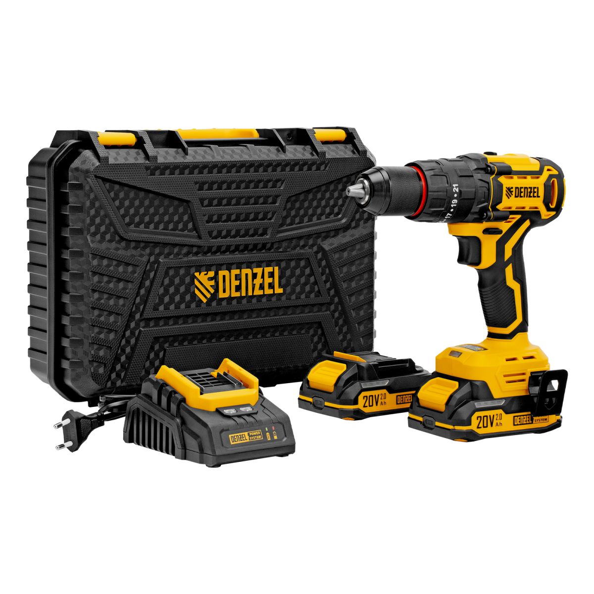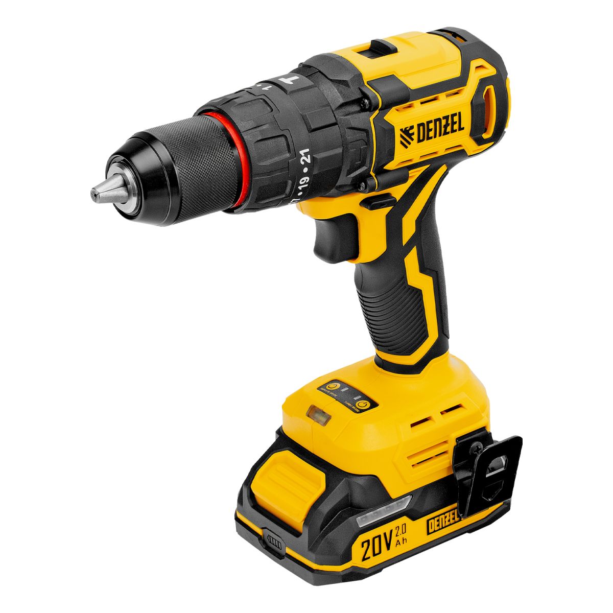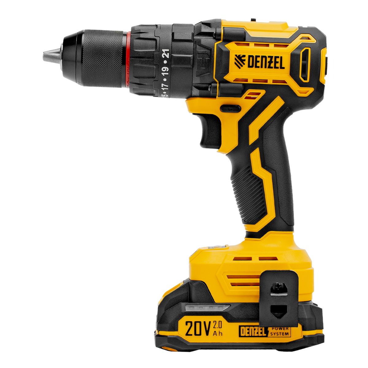 - Универсальность — аккумулятор Li-Ion емкостью 2 А·ч совместим со всеми инструментами единой платформы Denzel Power System 20V.