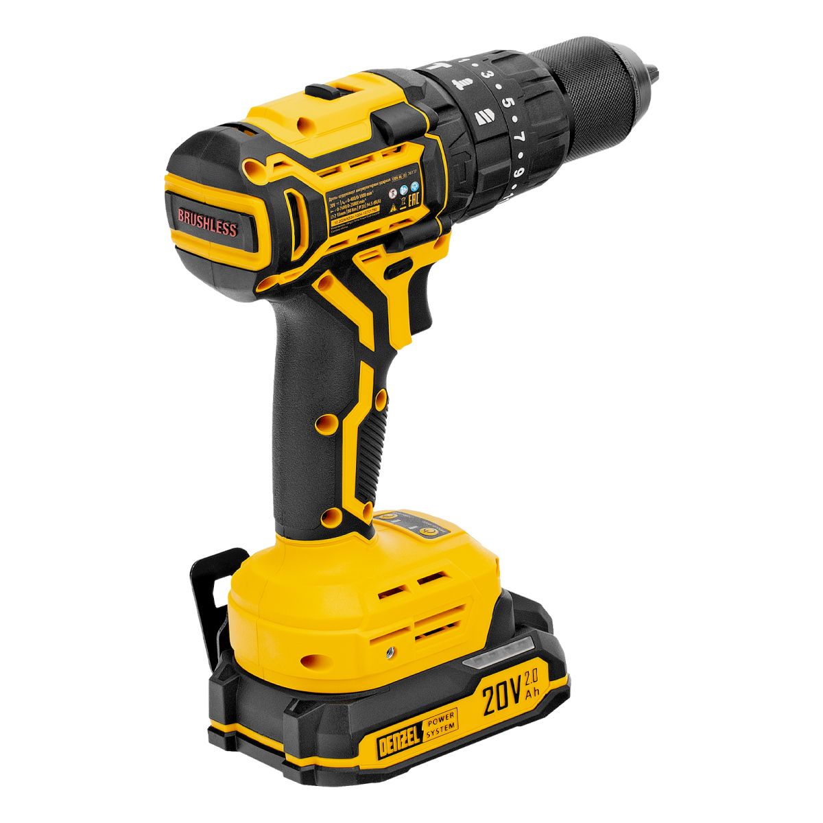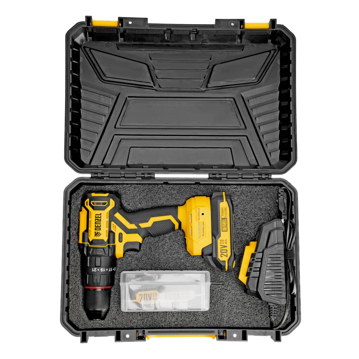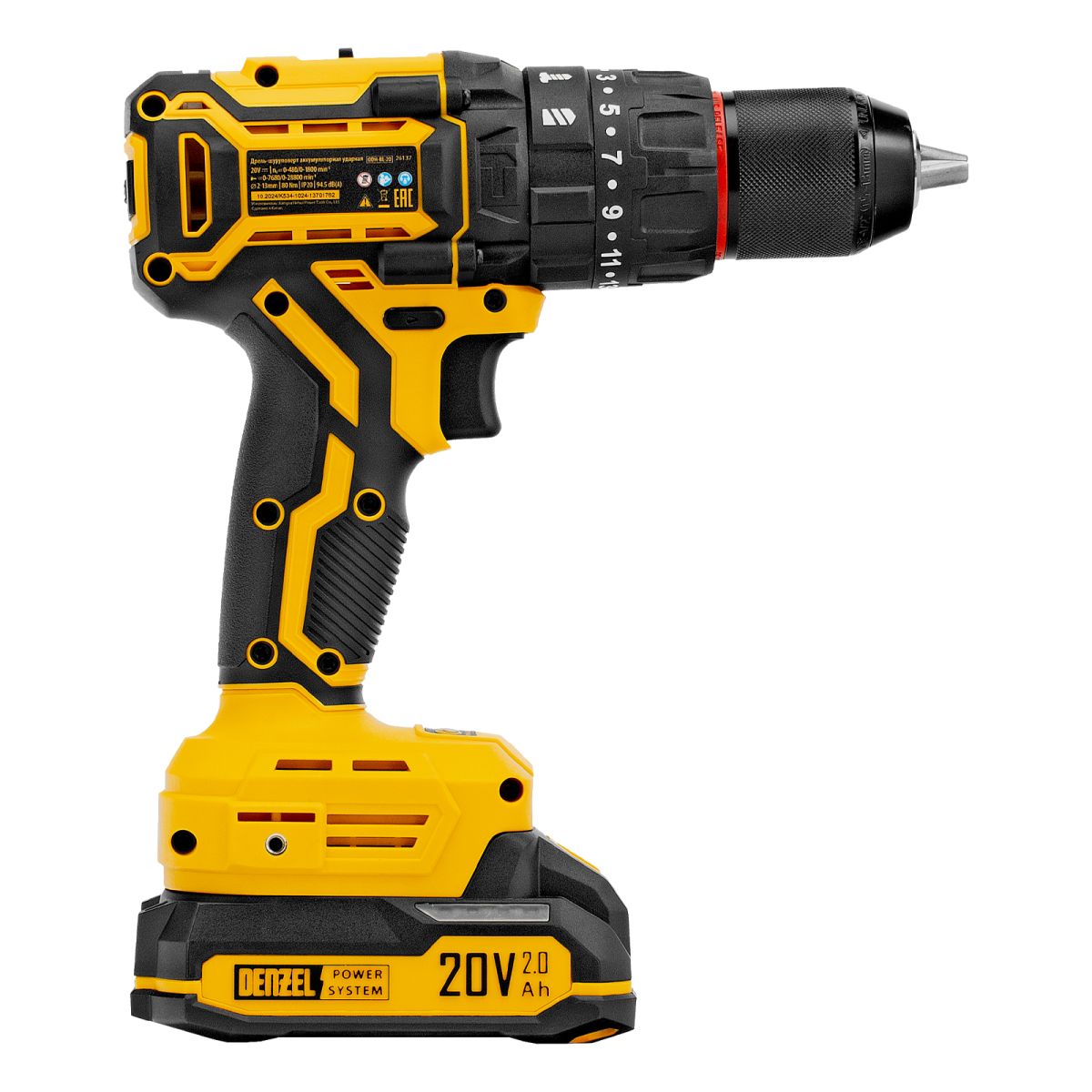 - Универсальность — аккумулятор Li-Ion емкостью 2 А·ч совместим со всеми инструментами единой платформы Denzel Power System 20V.