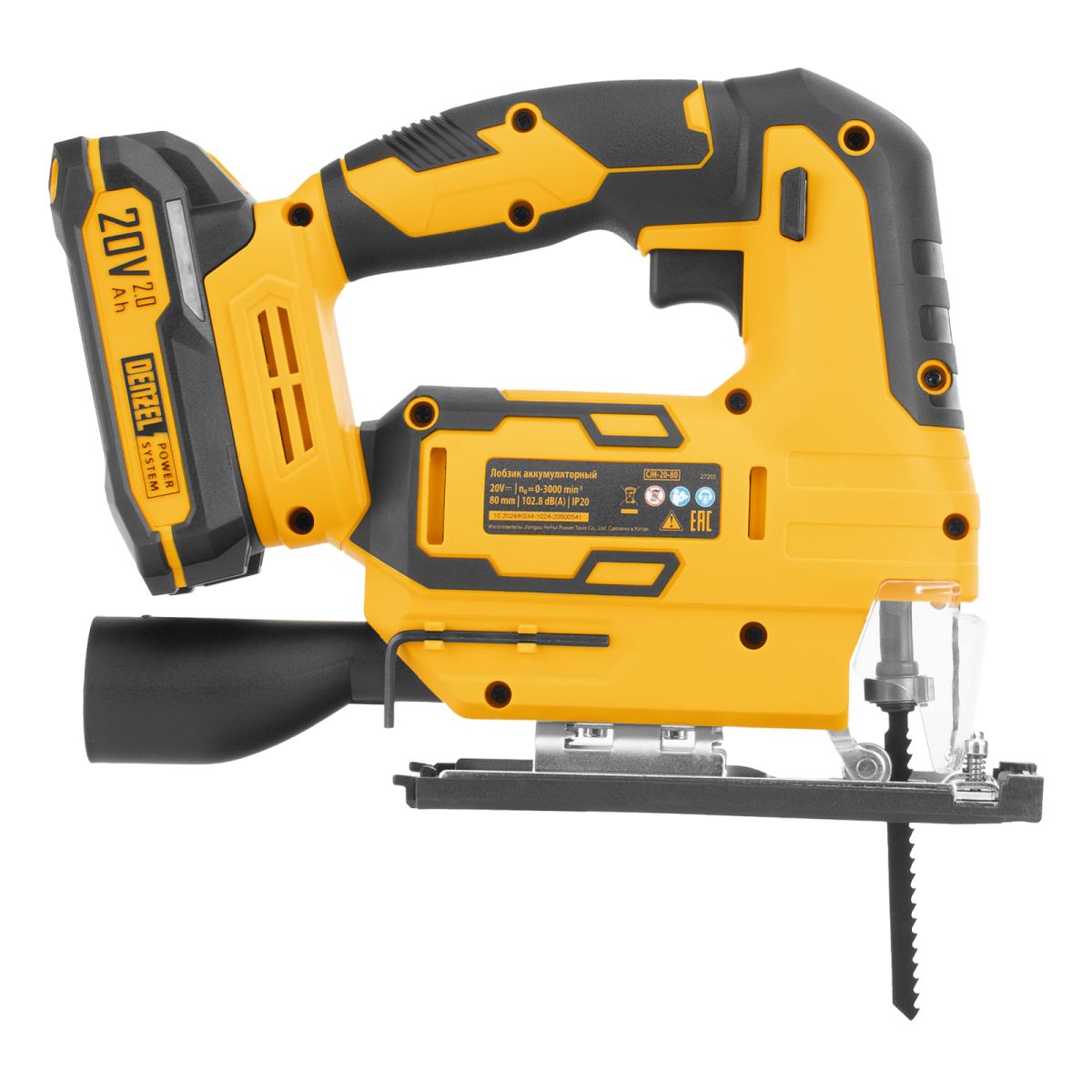 Аккумуляторный лобзик Denzel CJH-20-80 27205 работает от источника питания Li-Ion 20 В и предназначен для прямого и фигурного реза деревянных заготовок, а также листовых материалов из древесины, металла, пластика. Ход пилки составляет 20 мм, максимальная глубина пропила в древесине достигает 80 мм, в стали — 5 мм, в алюминии — 12 мм. Частота хода пилки регулируется в диапазоне 0-3000 ход/мин, что позволяет эффективно решать поставленные задачи. Предусмотрена возможность подключения пылесоса для обеспечения чистоты в рабочей зоне.