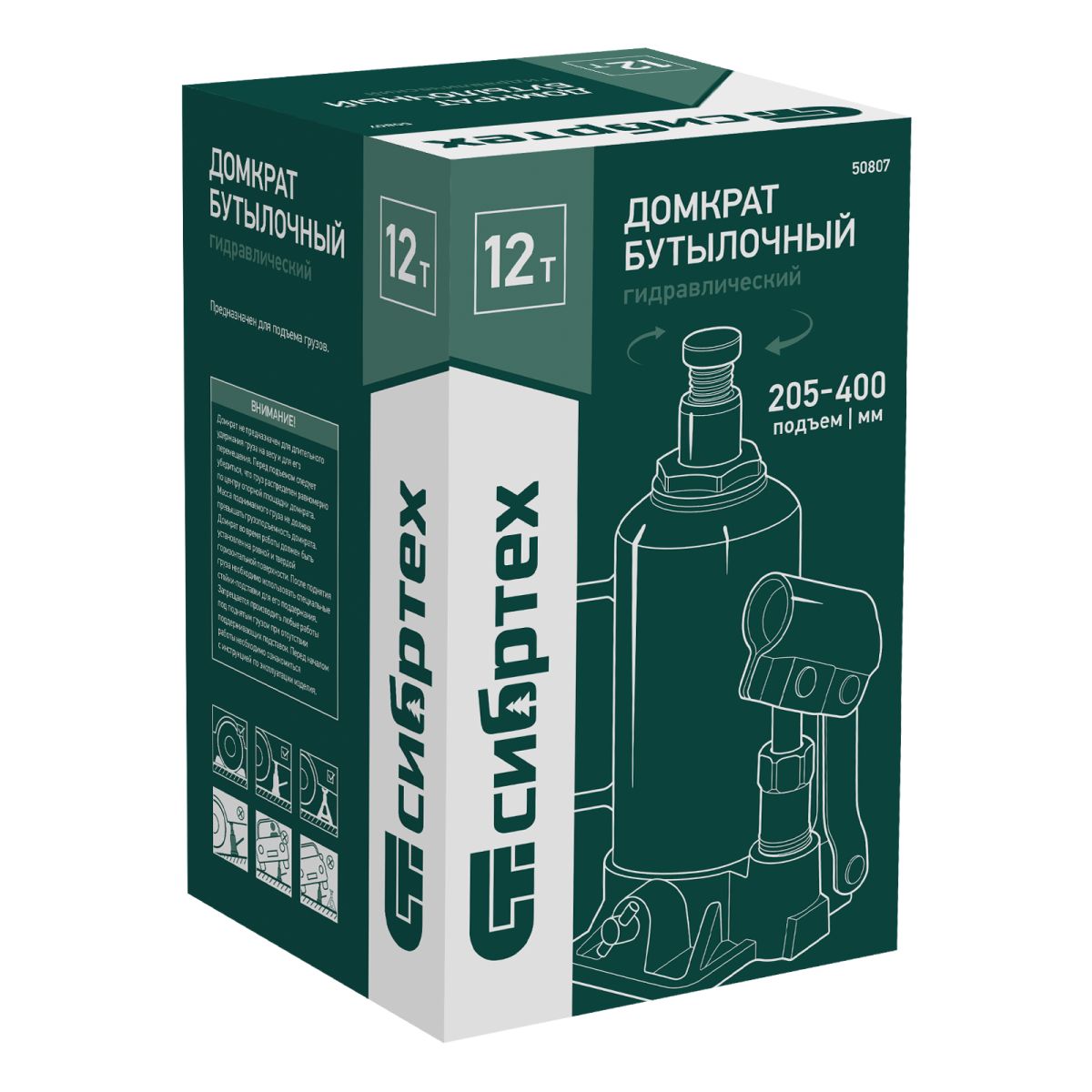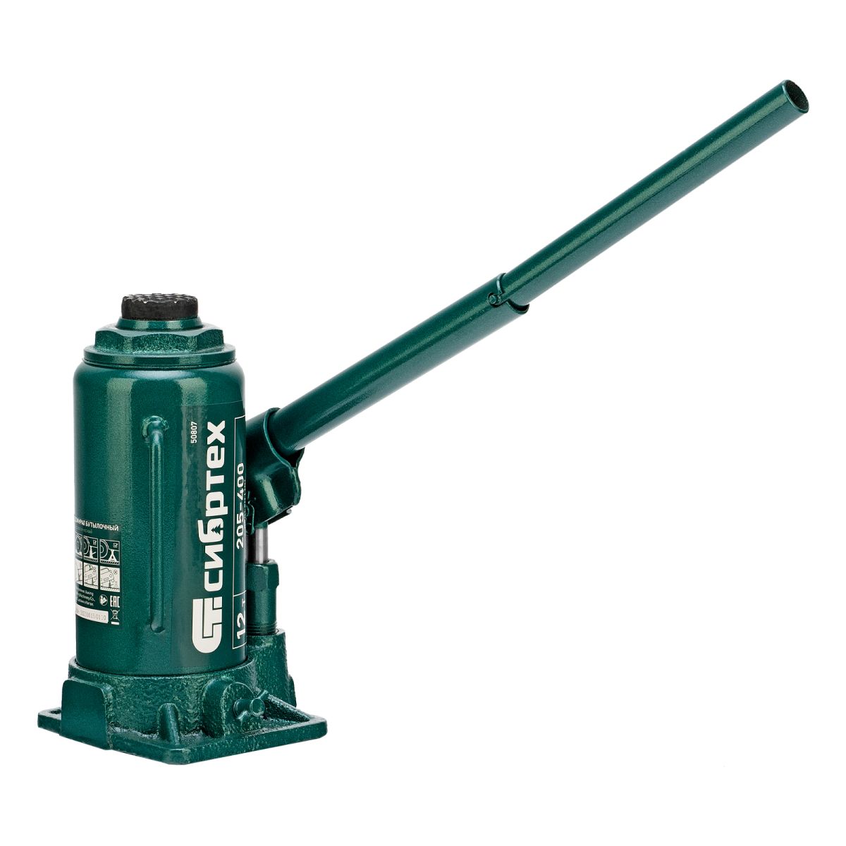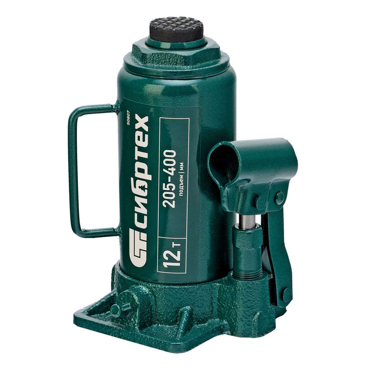 Домкрат гидравлический бутылочный Сибртех 50807 предназначен для подъема грузов массой до 12 т на высоту от 205 до 400 мм. Не требует больших усилий от пользователя и значительно облегчает рабочий процесс. Домкрат будет полезен при проведении техобслуживания машины в автосервисе или гараже.