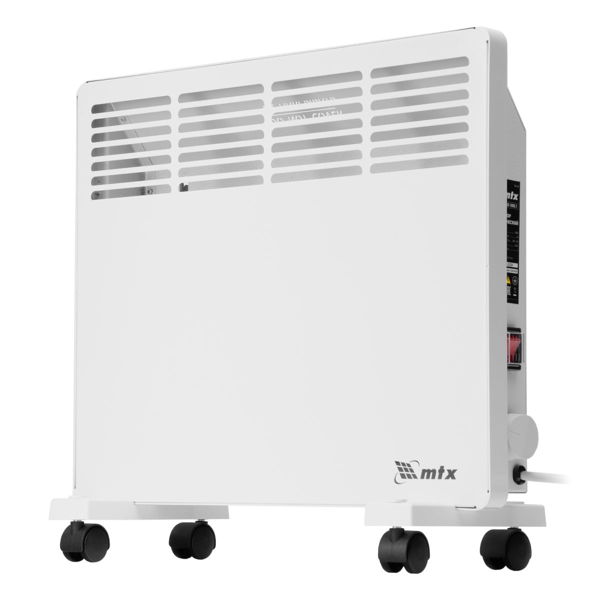 Конвектор электрический MTX KM-1000.1 98124 с X-образным нагревателем, колесами и термостатом, мощностью 1000 Вт, предназначен для использования в закрытых помещениях: квартирах, офисах, на производствах, в общественных местах и т.д. Рекомендуемая площадь обогрева составляет 15 кв.м. Х-образный нагревательный элемент обеспечивает быстрый и равномерный прогрев помещения до необходимой температуры, при этом не сушит воздух.