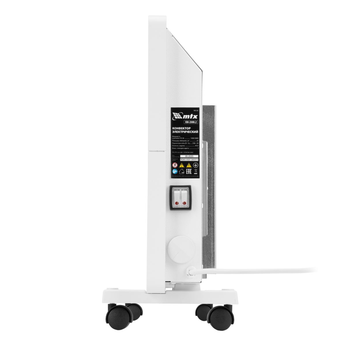Конвектор электрический MTX KM-2000.2 98126 с X-образным нагревателем, колесами и термостатом, мощностью 2000 Вт, предназначен для использования в закрытых помещениях: квартирах, офисах, на производствах, в общественных местах и т.д. Рекомендуемая площадь обогрева составляет 25 кв.м. Х-образный нагревательный элемент обеспечивает быстрый и равномерный прогрев помещения до необходимой температуры, при этом не сушит воздух.