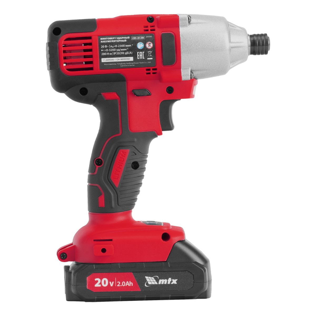 Ударный аккумуляторный винтоверт MTX CIDS-20-280 26580, в комплекте с аккумулятором 20 В емкостью 2 А·ч и зарядным устройством, предназначен для закручивания и откручивания винтов, шурупов, болтов и гаек. Развивает крутящий момент до 280 Н·м, что позволяет успешно решать поставленные задачи. Ударный механизм упрощает работу с туго затянутым или заржавевшим крепежом.
