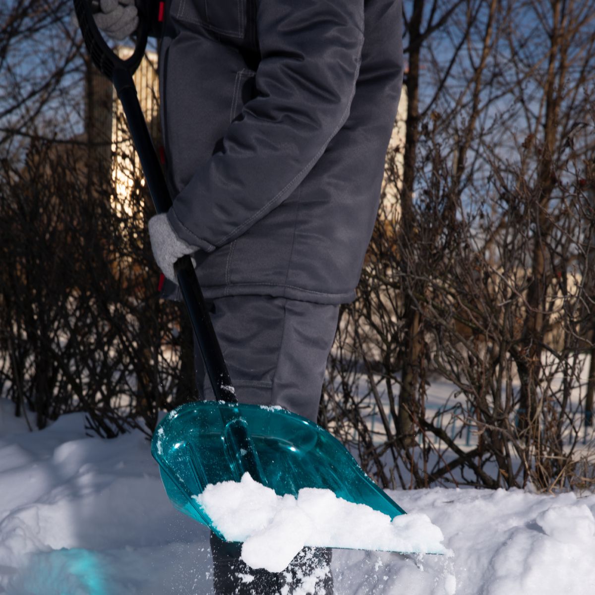 Лопата из поликарбоната Palisad Luxe 61638 размером 340 х 385 х 1375 мм, с алюминиевым черенком, используется для уборки снега. Позволяет быстро очистить участок небольшой площади. Инструмент пригодится владельцам дачных участков и гаражей.