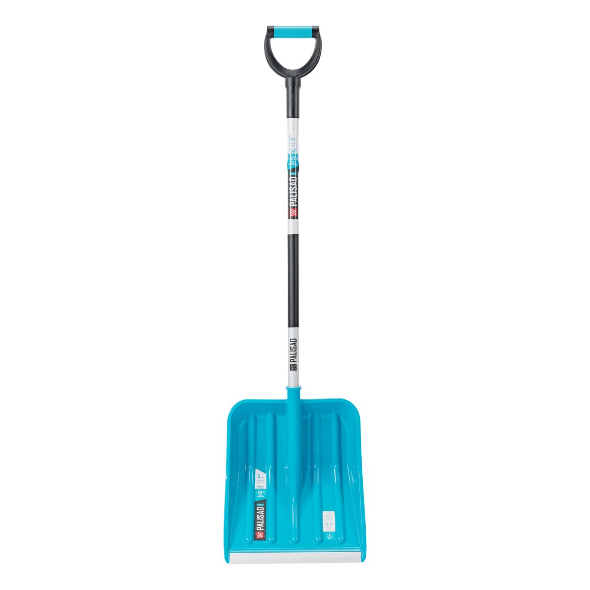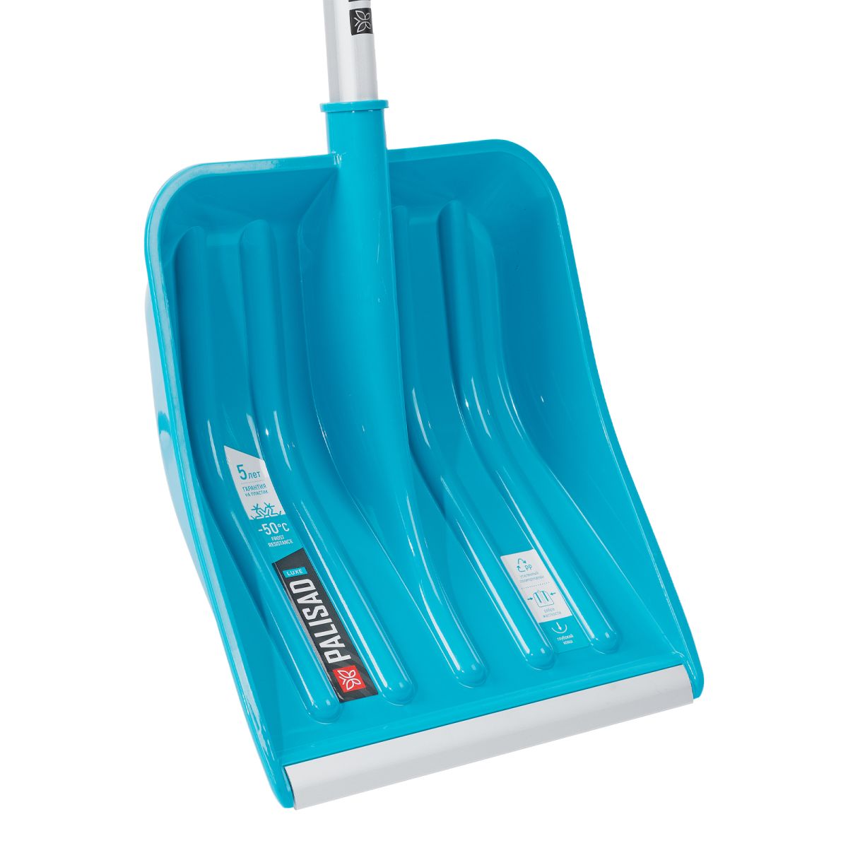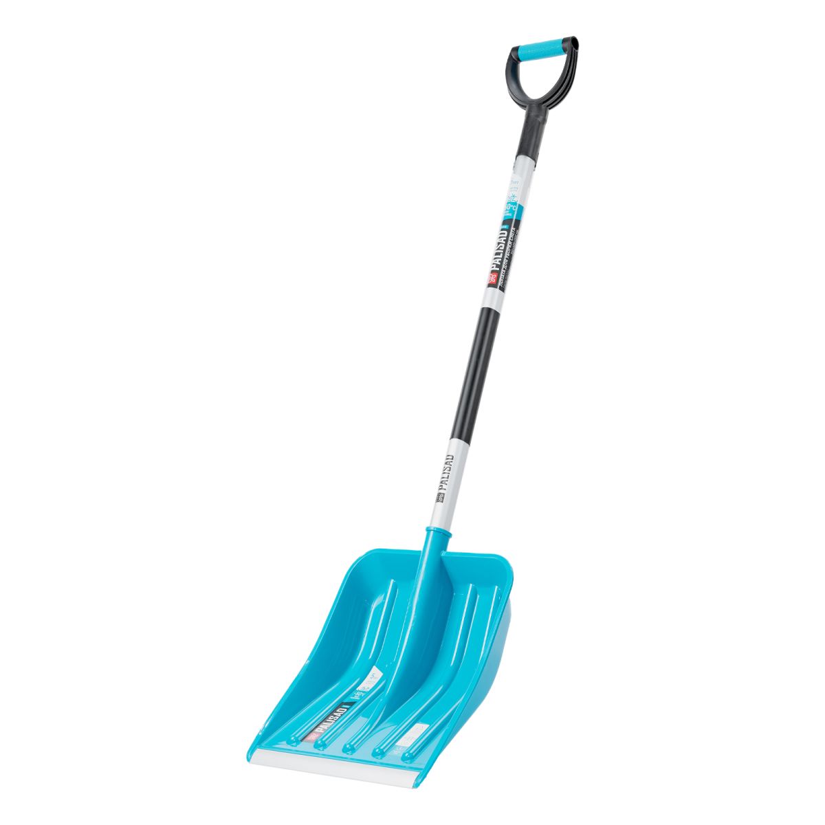 Лопата Palisad LUXE 61776 размером 350 x 405 x 1300 мм, с ковшом из полипропилена и алюминиевым черенком с ПВХ-накладкой, предназначена для уборки снега. Ковш с бортиками вмещает большое количество снега. Лопата позволяет расчистить садовую дорожку, тротуар, площадку перед гаражом и т.д.