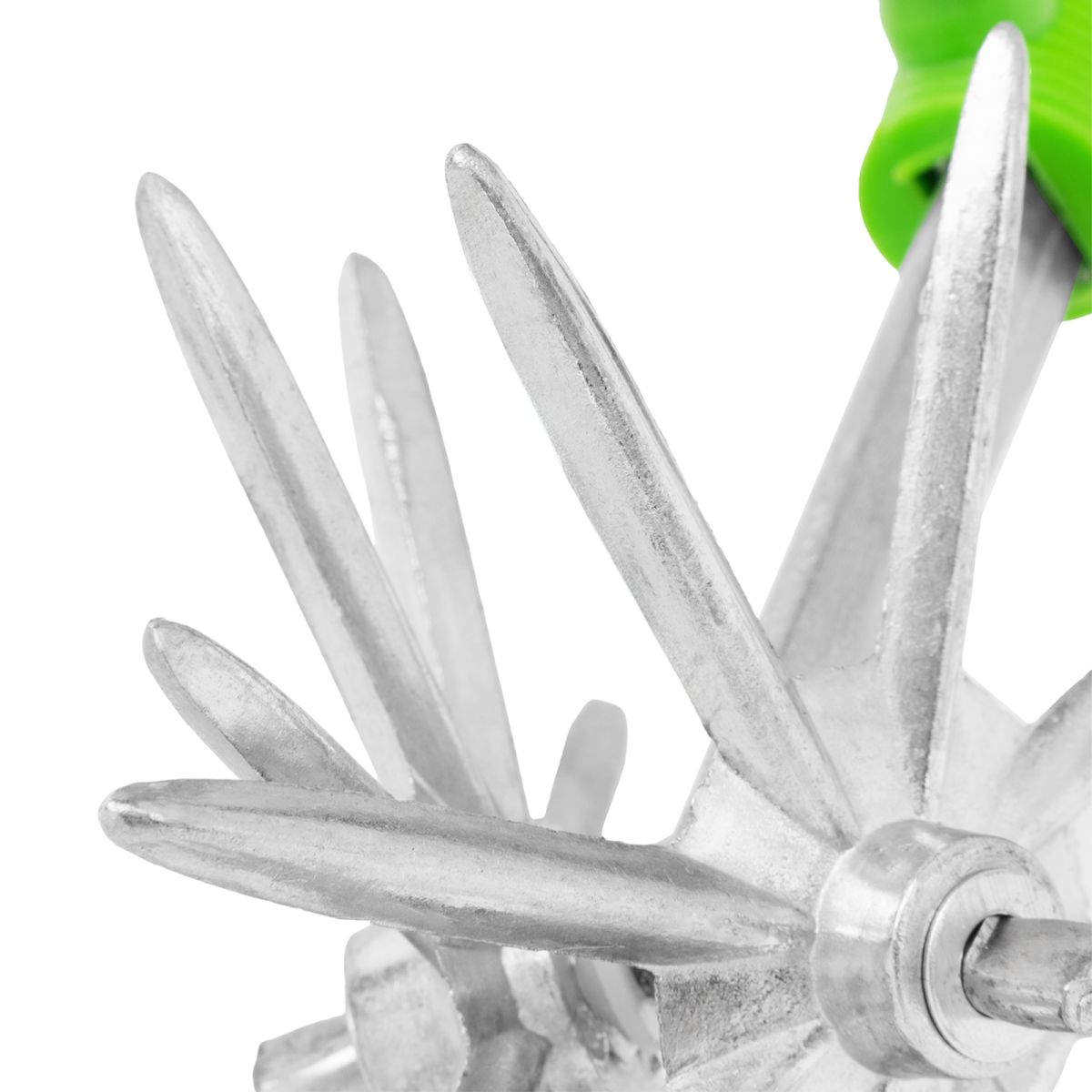 - Рабочая часть выполнена из коррозионностойкого алюминиевого сплава, а рукоятка — из полипропилена, что гарантирует долговечность культиватора.