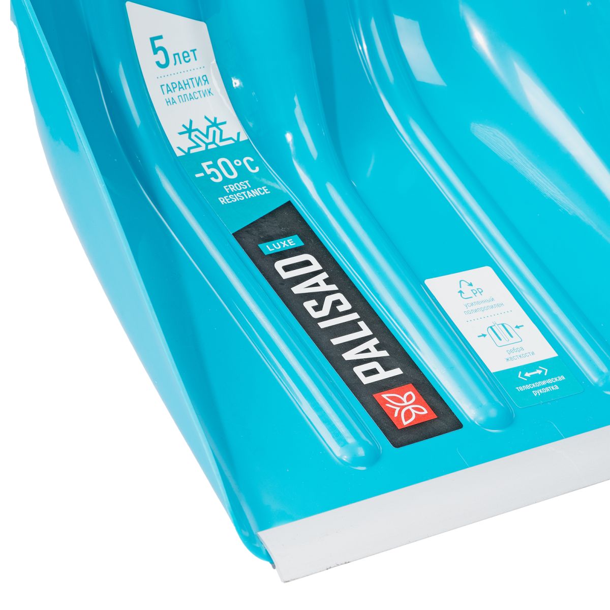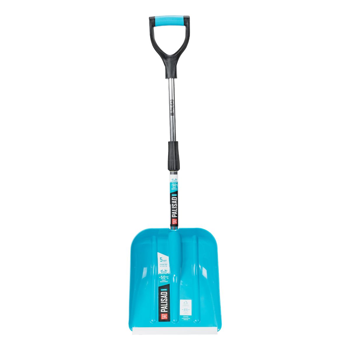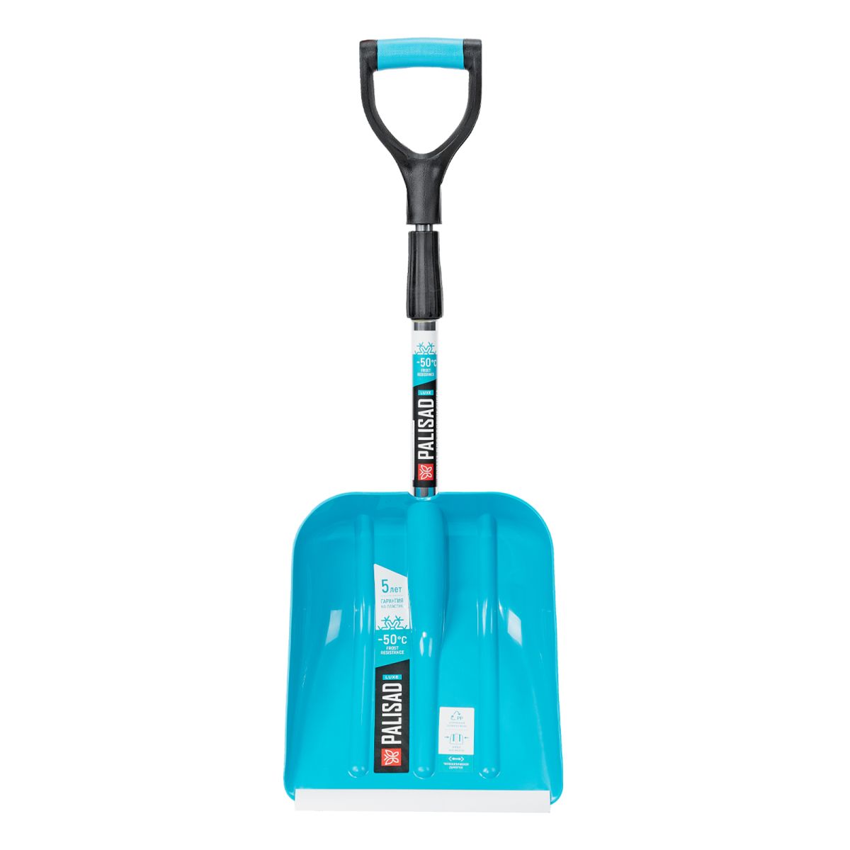 - Долговечность — ковш изготовлен из полипропилена, а черенок — из анодированного алюминиевого сплава.