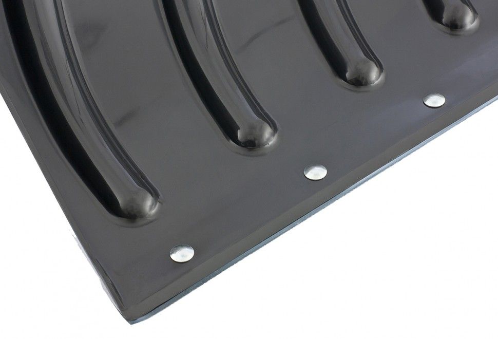 - Надежность — благодаря стальной окантовке и ребрам жесткости на ковше лопата не боится механических повреждений, подходит для интенсивного использования, уборки наста и плотного снега.
