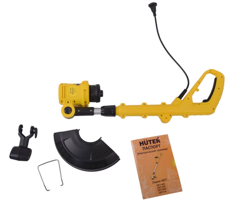 Триммер электрический HUTER GET-500 - надежный инструмент для кошения мягкой молодой травы на небольшой площади. Подойдёт для работы на приусадебном участке или в саду. Ширина обработки - 25 см. На основной рукоятке предусмотрена мягкая накладка для удобного удержания инструмента. Электрический двигатель расположен внизу. Головка с леской – режущая часть триммера, состоит из пластикового корпуса и заправленной внутрь его лески.