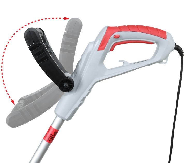 - Ручка с выключателем способствует лучшему удержанию инструмента, а также обеспечивает комфортное управление электрическим триммером
