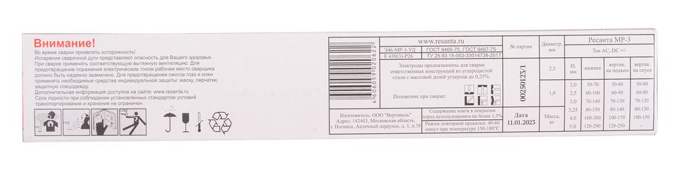 Электрод для сварки Ресанта МР-3 Ф2,5 Пачка 1 кг
