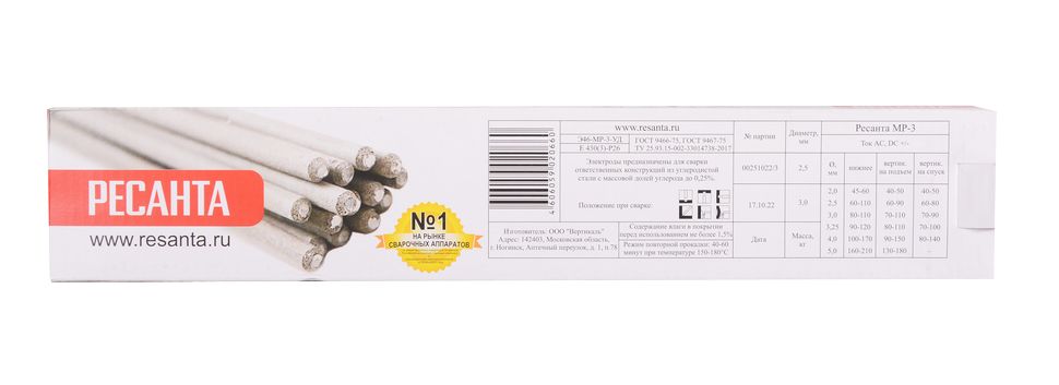 Электрод для сварки Ресанта МР-3 Ф2,5 Пачка 3 кг