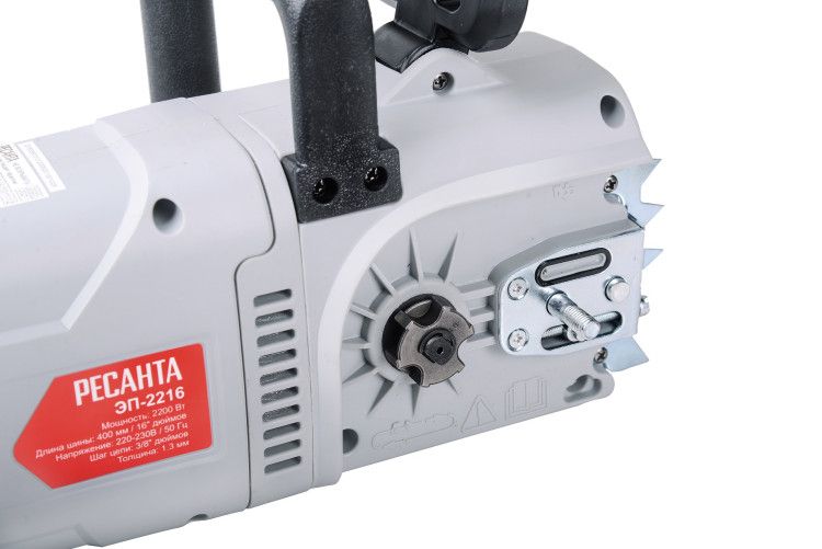 Отличительными особенностями электропилы Ресанта являются простота и удобство в работе, ведь она не требует заправки топливом и работает от сети 220В. Также стоит отметить низкий уровень шума, создаваемый при работе, а также полное отсутствие выхлопных газов. Это означает, что вы можете использовать пилу не только на улице, но и в помещении при ремонтных и строительных работах. Вы можете легко регулировать натяжение цепи с помощью винта, расположенного на корпусе справа. К характеристикам, обеспечивающим комфортное пользование инструментом, также можно отнести автоматическую смазку цепи. Чтобы вы смогли определить уровень смазки для цепи, в корпусе есть смотровое окошко с делениями. Единственная особенность - это недостаточная мобильность, ведь пользоваться инструментом можно только в непосредственной близости от розетки переменного тока 220В. Этот легко исправить, используя переноску (с кабелем подходящего сечения!) или бензогенератор Ресанта. Для электропилы ЭП-2216 подойдут цепи со следующими параметрами: количество звеньев 57, шаг цепи 3/8, толщина ведущего звена 1.3, шина 161.