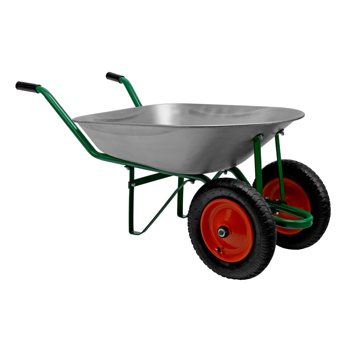 Садовая тачка Palisad 689823 с двумя колесами, грузоподъемностью 170 кг и с кузовом объемом 78 л, рассчитана на транспортировку садовых и легких строительных грузов. Избавляет от необходимости ручного перемещения тяжестей и позволяет снизить нагрузку на спину.
