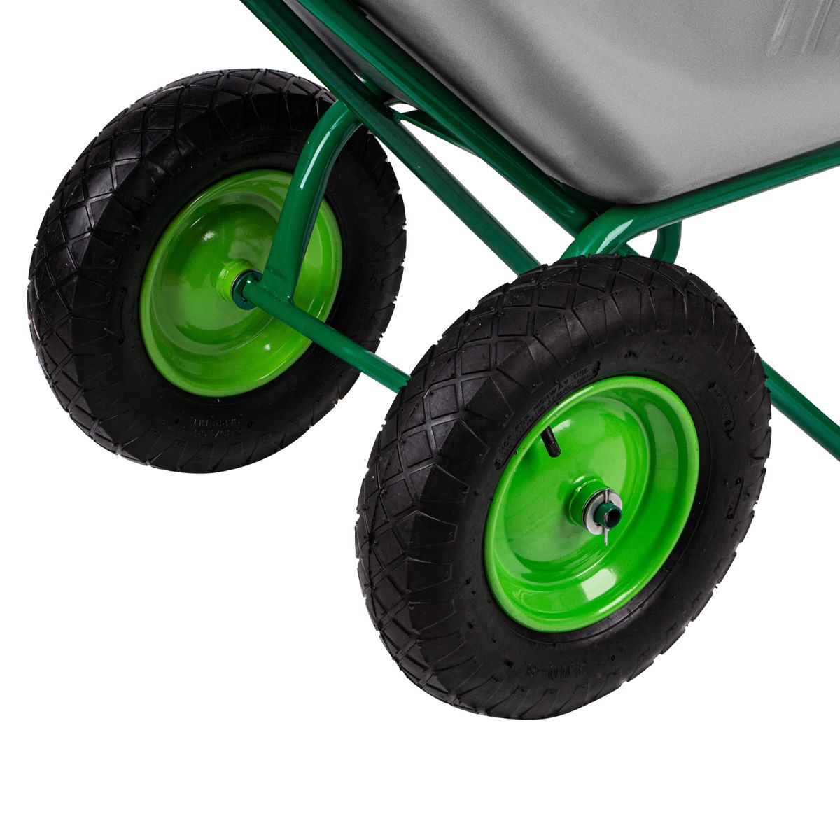 - Комфортное использование — пневматические колеса с камерами и резиновыми шинами гасят вибрации и обеспечивают плавность хода.