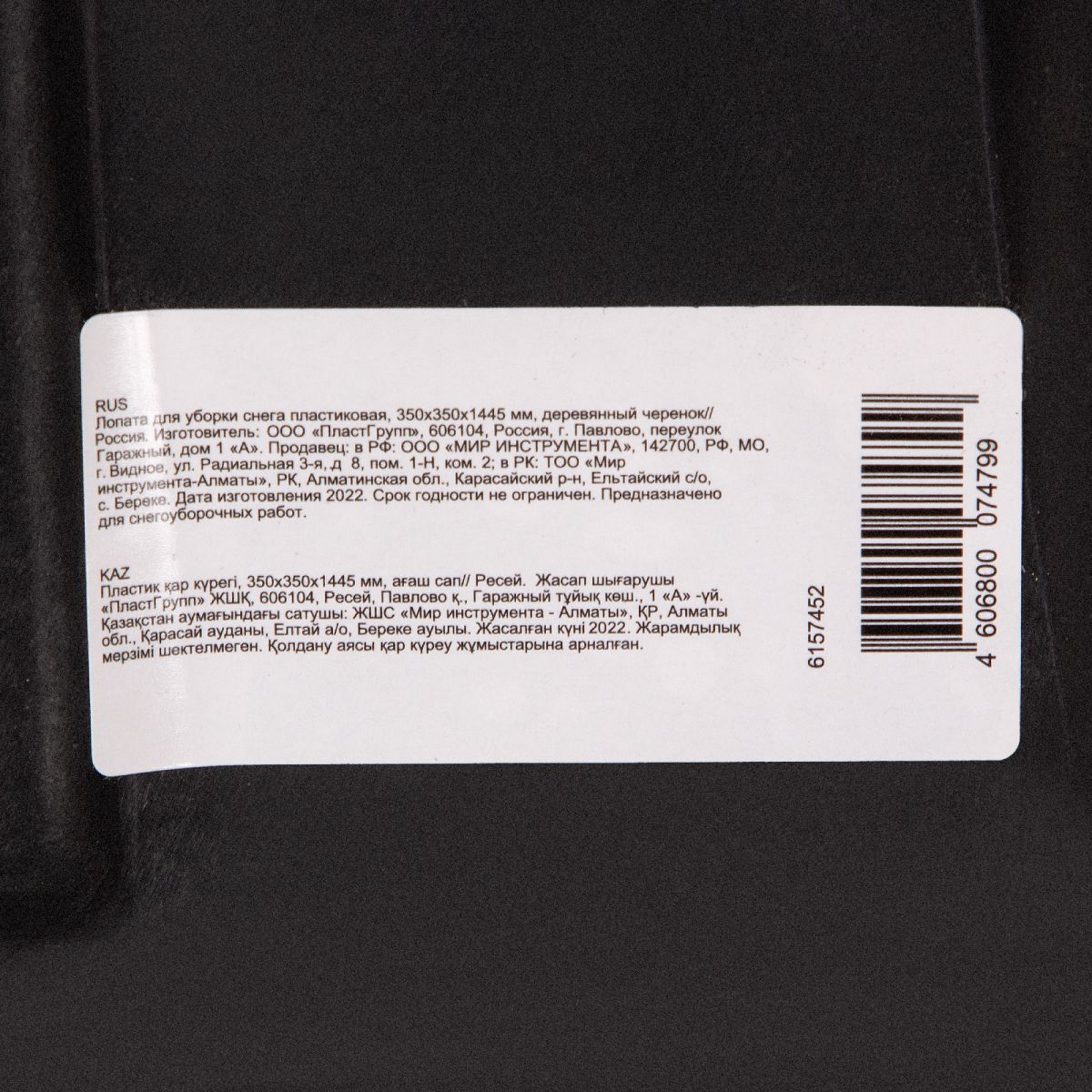 Пластиковая лопата 6157452 размером 350 х 350 х 1445 мм, с деревянным черенком, позволяет облегчить уборку снега. С ее помощью можно очистить дорожки в загородном доме, выезд из гаража и т.д. С облегченной лопатой 815 г легко справятся женщины и подростки. А за счет длины 1445 мм с ней комфортно работать, т.к. снижается нагрузка на спину.