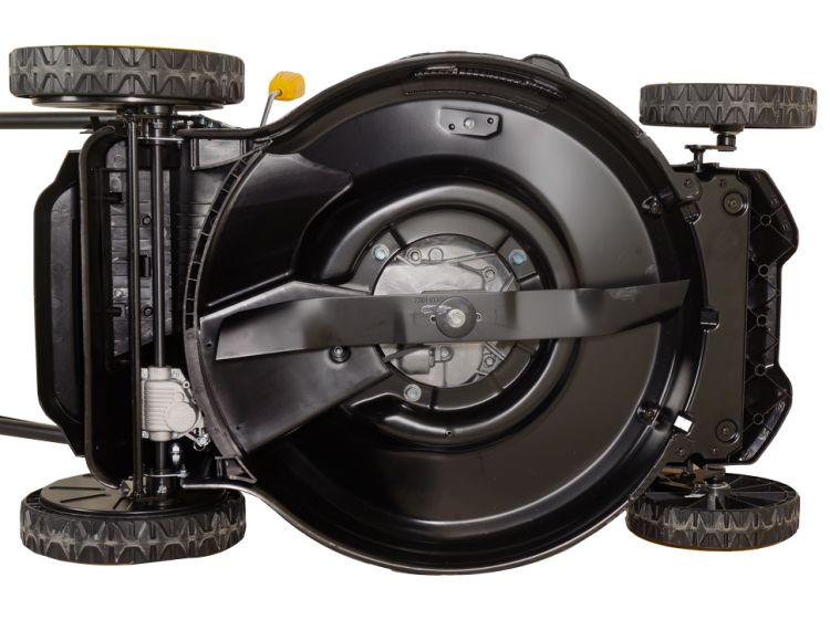 • Металлическая дека (корпус) у большинства моделей. Такая дека менее подвержена повреждениям от ударов камней или других предметов, которые могут оказаться в траве.