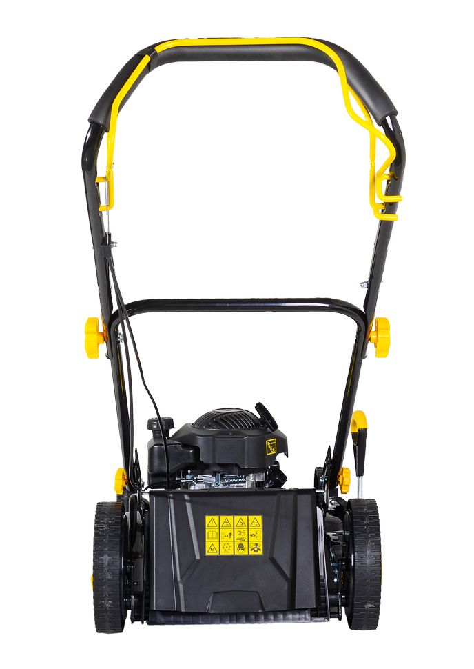 Газонокосилка бензиновая HUTER GLM-6.0S используется для стрижки газонов площадью до 1000 кв.м. Агрегат оснащен четырехтактным одноцилиндровым двигателем мощностью 6.0 л.с. В качестве топлива рекомендуется использовать бензин АИ-92, так бензокосилка прослужит долго. Благодаря ручке регулирования высоты среза, расположенной у заднего правого колеса газонокосилки, можно оперативно регулировать высоту среза в семи положениях от 25 до 75 мм.