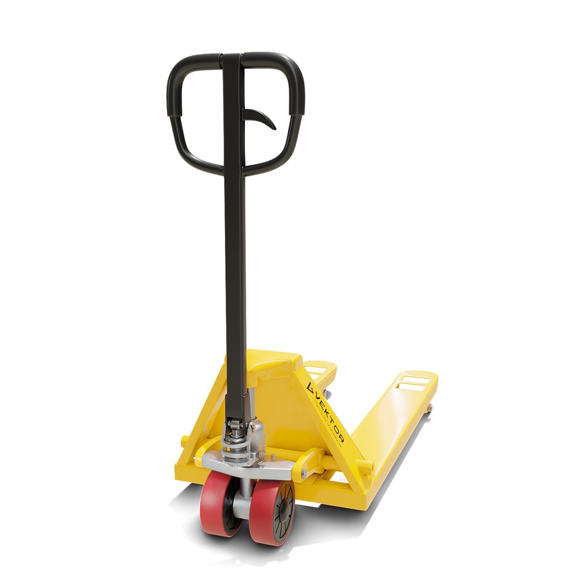 Гидравлическая тележка (рохля) Vektor 20/115 PU подходит для перемещения грузов на поддонах массой до 2 тонн. Повсеместно используется на складах, на производствах, на фабриках, в магазинах. Устройство гидравлической тележки Vektor 20/115 PU Рохля представляет собой металлическое основание с двумя вилами и ручкой управления. Общая ширина вил — 55 см, а длина — 115 см, поэтому вы сможете перемещать грузы, установленные на большинство видов паллет. Гидравлический насос, встроенный между основанием и ручкой, отвечает за плавный подъем и спуск груза. На верхней части ручки есть рычаг, с которым тележка переключается в режимы подъема, спуска и движения. Ведущие колеса тележки изготовлены из полиуретана, они подходят для эксплуатации на ровной поверхности. В комплекте с рохлями поставляется подробная инструкция на русском языке. Опытные менеджеры СибТоргСервис помогут с подбором гидравлической тележки под ваши задачи, ответят на любые вопросы по оборудованию, процессу покупки, доставке, установке и пусконаладке, сервисному обслуживанию.
