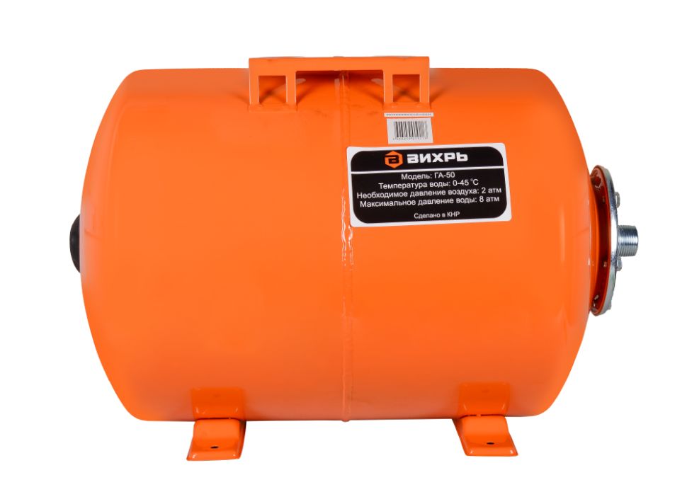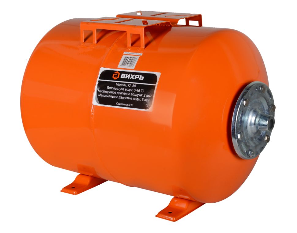 горизонтальный, 50 л, макс. давление воды – 8 атм, мощность поверхностного насоса до 1500 Вт, мощность скважинного насоса до 1000 Вт
