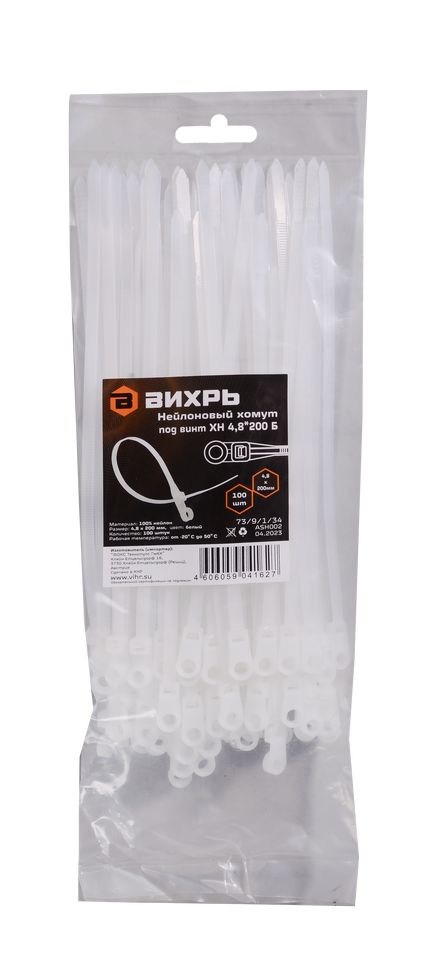 Хомут нейлоновый под винт Вихрь 4,8х200 Б (100 шт)