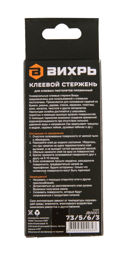 Клеевой стержень Вихрь 7x100 мм, 12 шт