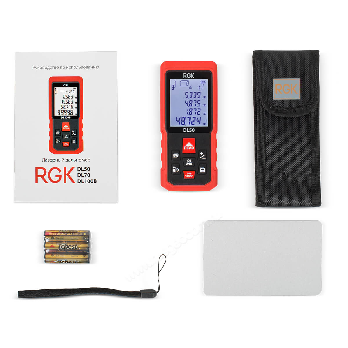 К другим полезным функциям дальномера RGK DL50 можно отнести: