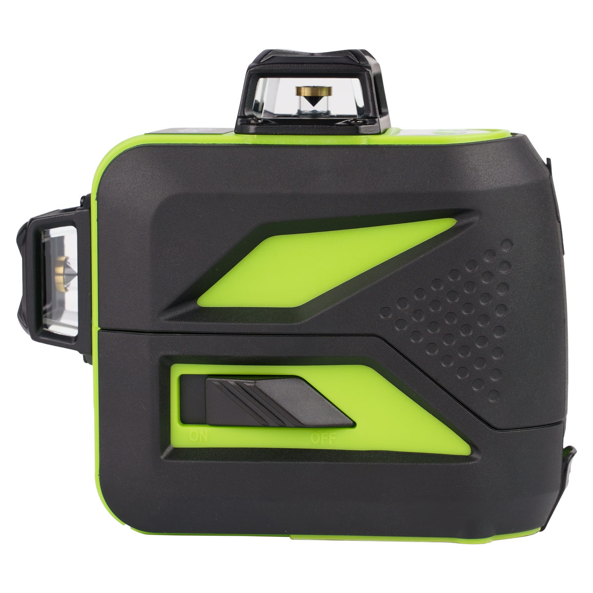 Лазерный уровень RGK PR-3G проецирует горизонтальную и 2 вертикальные линии. Лазерный луч зеленого цвета хорошо различим при ярком солнечном освещении и на поверхностях темного цвета.