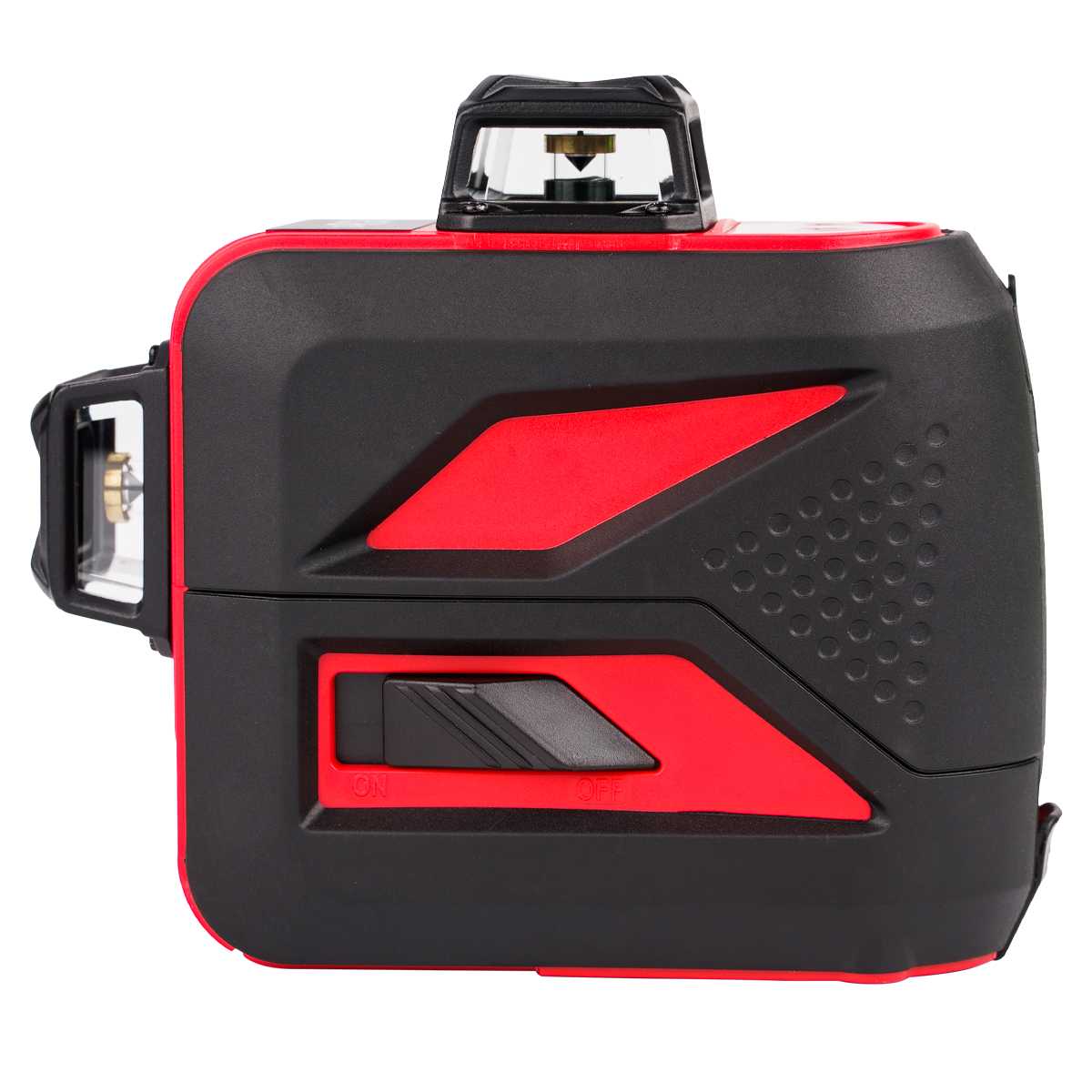 Компенсатор автоматически выравнивает лазерный луч в диапазоне ±3°. Благодаря этому, вам не нужно выставлять прибор по пузырьковому уровню. Также, за счет компенсатора, избегается искажения лазерных плоскостей от мелких неровностей пола. При отклонении прибора более, чем на 3° раздается звуковой сигнал, а лазерная линия начнет мигать.