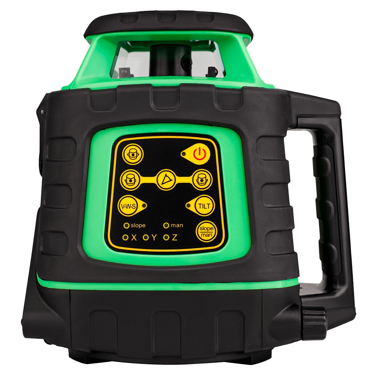 При отключенном маятнике лазерный нивелир AMO ROTOR 300G может строить линии и плоскости с произвольным наклоном, что очень удобно для отделки и установки лестничных пролетов, укладки плитки и иных декоративных элементов интерьера. Для более точной и комфортной работы под наклоном прибор следует установить на подходящий штатив с резьбой 1/4".