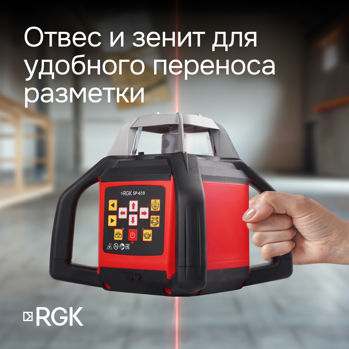 Оснащённый компенсационной системой, лазерный нивелир RGK SP-610 автоматически устраняет отклонение от горизонта до 4° - при большей разгоризонтировке срабатывает встроенная сигнализация. При переноске прибора будет полезная функция отключения компенсатора, а специальная блокирующая кнопка предотвратит его случайное включение при построении наклонных плоскостей.