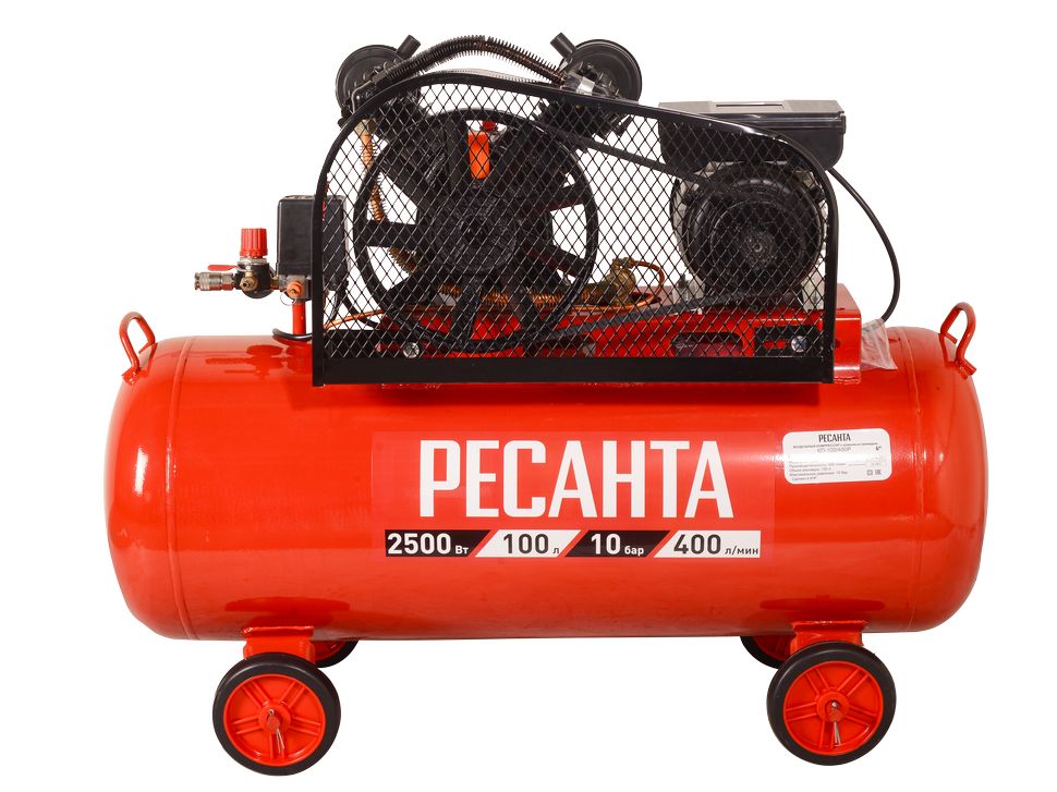 400 л/мин, 100 л, 10 Бар, 2500 Вт, ременная передача