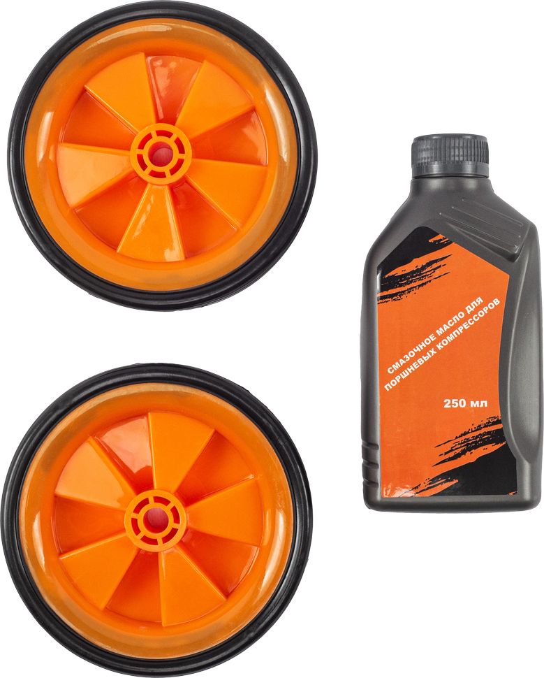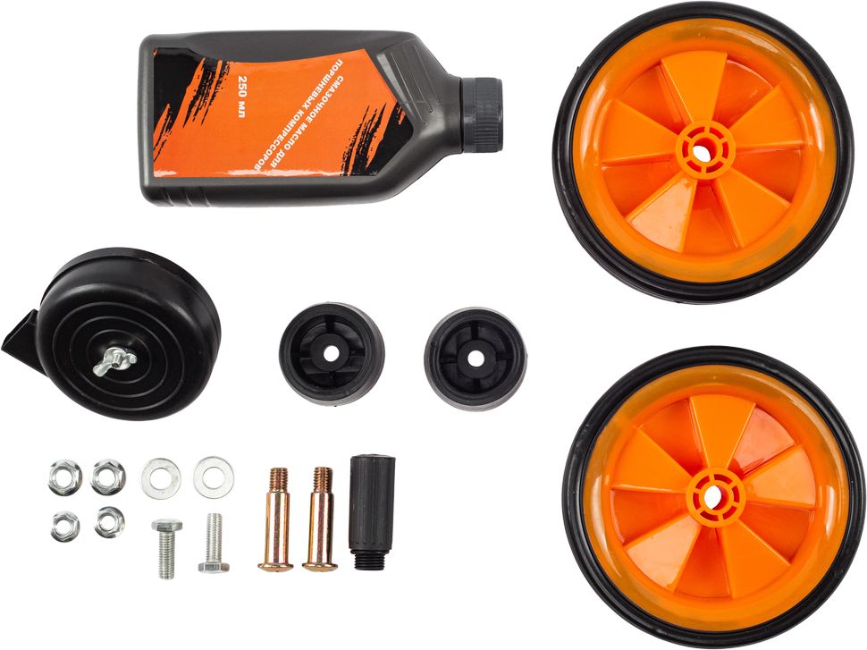 Паспорт изделия, Колеса, Воздушный фильтр, Резиновая подножка, Сапун, Смазочное масло для компрессоров