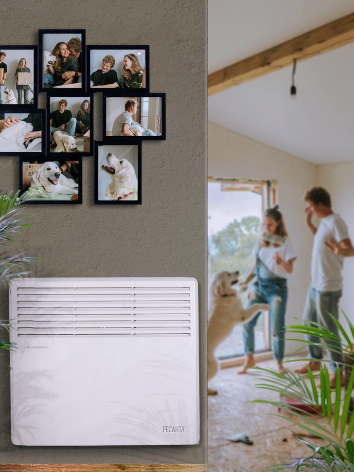 Электрический конвектор РЕСАНТА ОК-2000Е для обогрева помещений. Состоит из нагревательной части (ТЭН), заключенной в нижней части корпуса со щелеобразными отверстиями снизу и жалюзи в верхней части. Данная конструкция даёт возможность воздуху беспрепятственно проходить внутри конвектора,