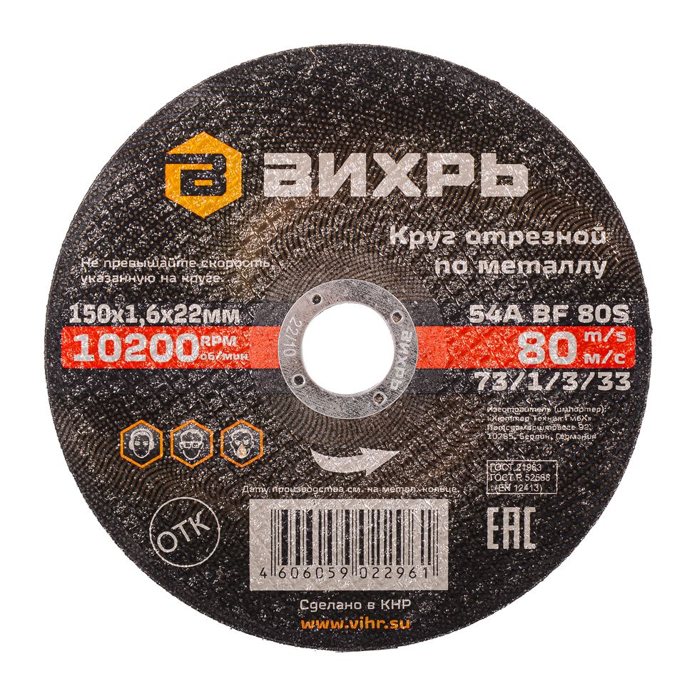Круг отрезной по металлу Вихрь 150х1,6х22 мм