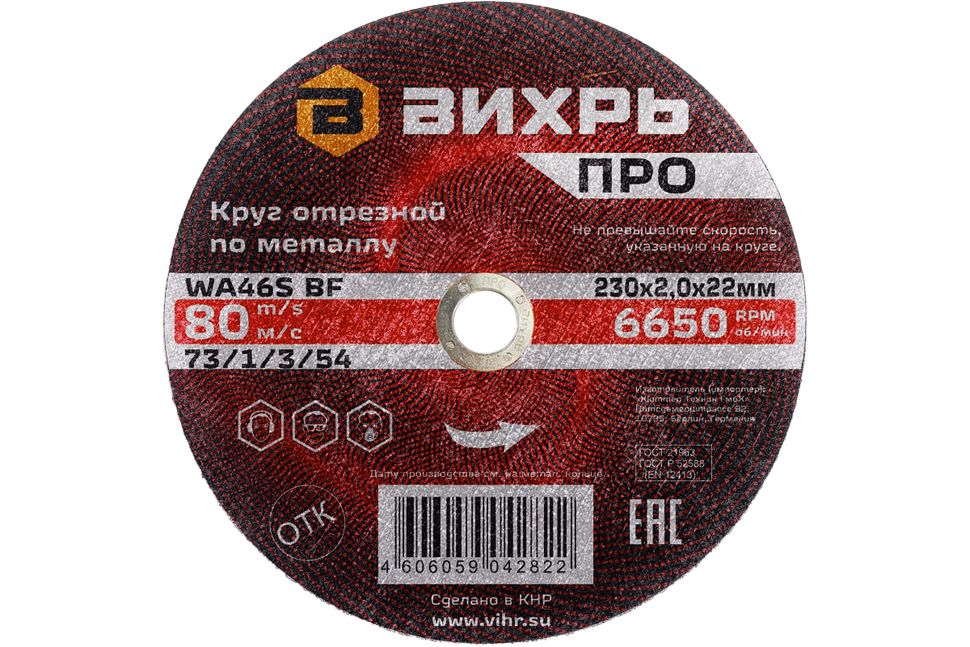 Круг отрезной по металлу Вихрь ПРО 230х2,0х22 мм