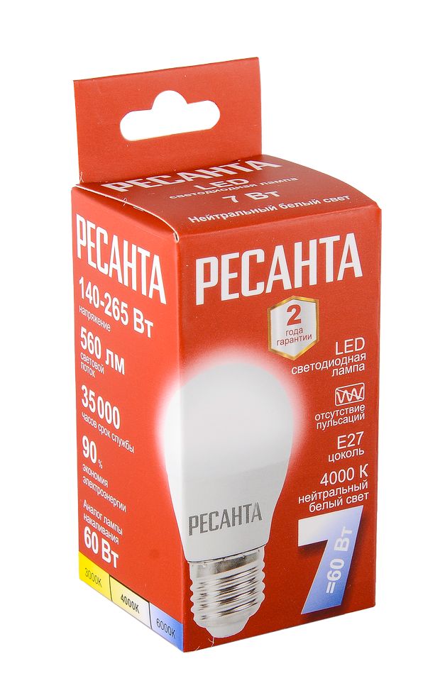 Лампа светодиодная Ресанта LL-R-G45-7W-230-4K-E27