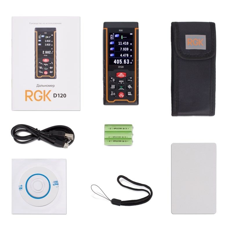 Топовая модель дальномеров RGK D120 обладает широким набором функций, отвечающих всем требованиям строительных и ремонтных бригад.