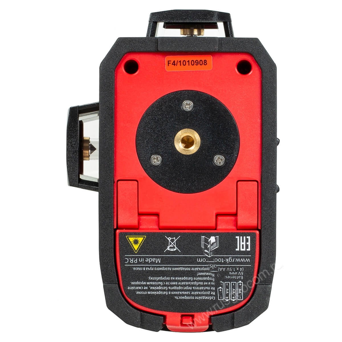 Корпус прибора защищён прорезиненным покрытием, предохраняющим лазерный уровень RGK PR-3M от повреждений при ударах и падениях. Благодаря эргономичной форме лазерный нивелир удобно лежит в руках. Изоляция от воды и пыли соответствует стандарту IP54, что позволяет использовать прибор рядом с источниками водяных брызг и в сильном запылении. Для установки на треггер или фотоштатив нивелир RGK PR-3M оснащён резьбой 1/4".