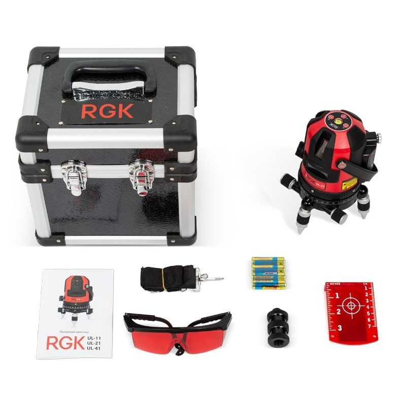 Современный лазерный нивелир RGK UL-41 строит четыре вертикальные и одну горизонтальную плоскость с развёрткой 110°. Благодаря поворотной конструкции, горизонтальному лимбу и двум точным винтам наводки лазерный уровень позволяет поворачивать лазер на 360° по горизонтали, исключая необходимость перестановки прибора. Точность построения линии составляет 0,2 мм на 1м, рабочая дистанция достигает 20 метров в помещении и до 50 метров – при использовании приемника излучения, в том числе, и на улице. Мощный лазер II класса, которым оснащён UL-41, обеспечивает построение чёткой, хорошо различимой в пределах рабочей дистанции линии на любой поверхности.