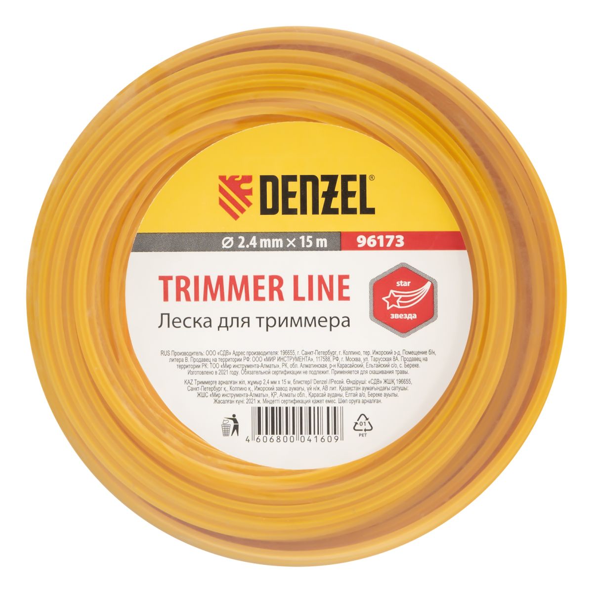Леска для триммера, звезда, 2.4 мм х 15 м Denzel