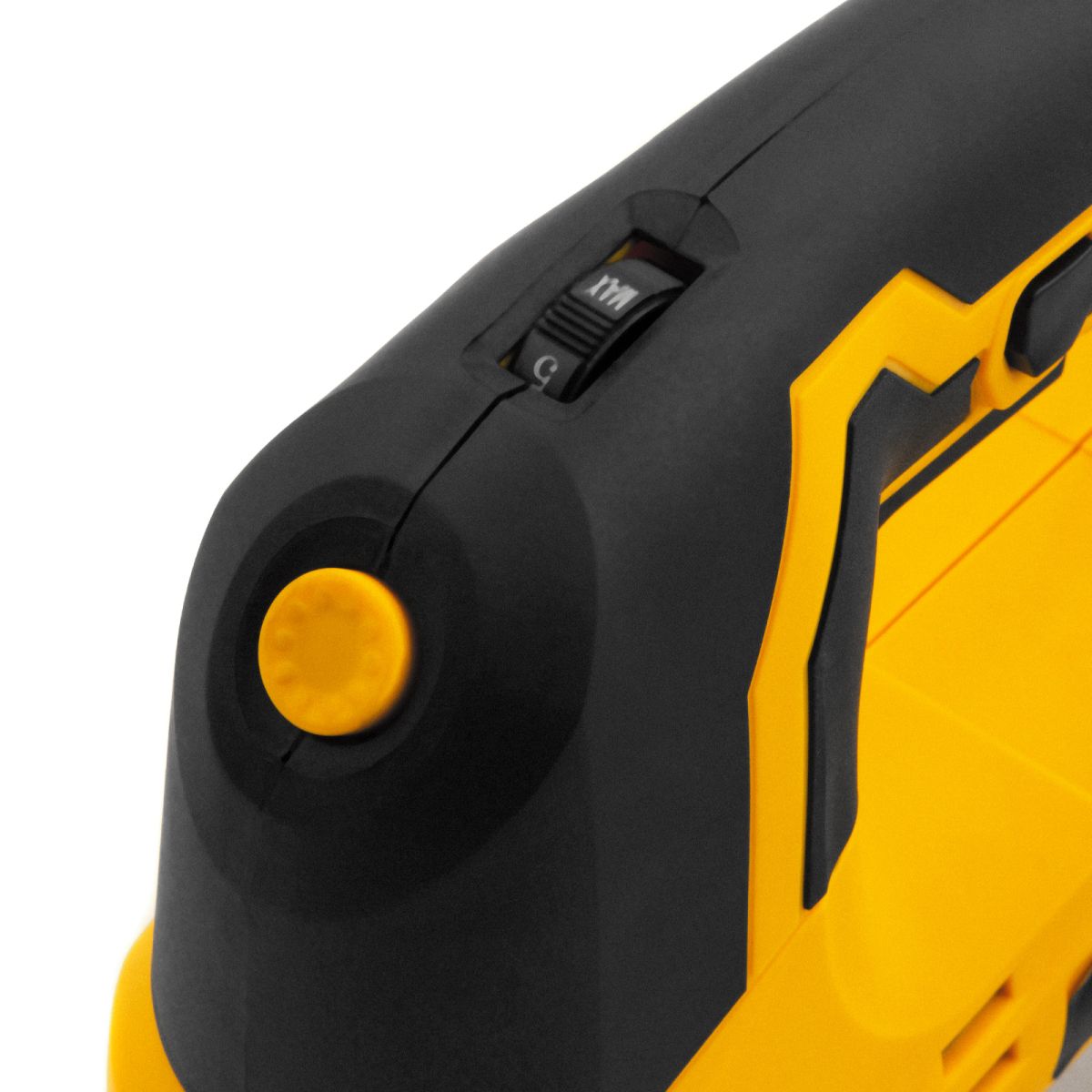 - Электронная регулировка частоты ходов — можно выбрать оптимальную скорость реза в зависимости от обрабатываемого материала.