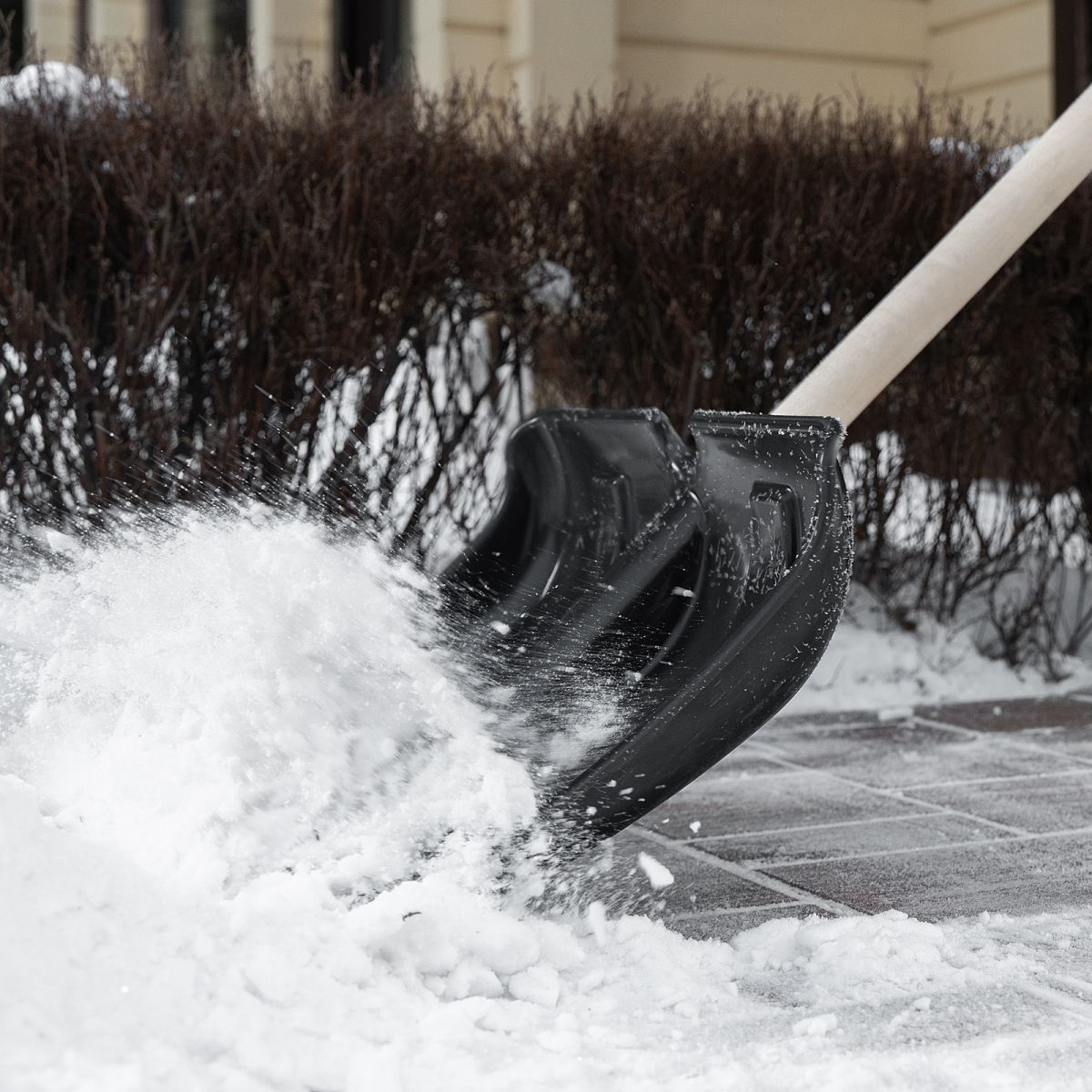 Лопата для уборки снега пластиковая, 380х350х1370 мм, деревянный черенок