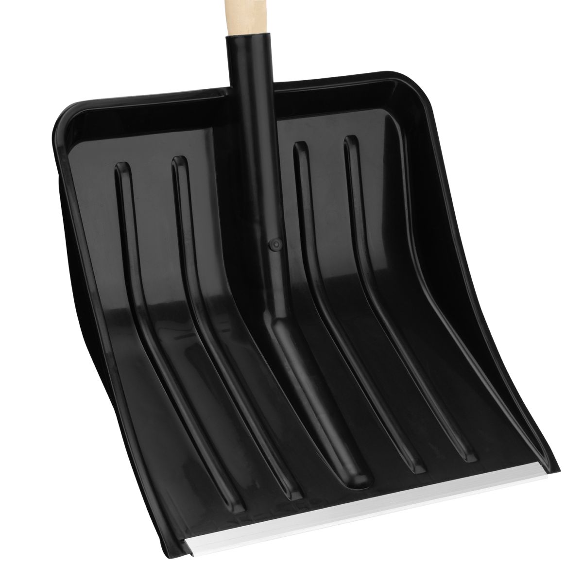 - Защита от повреждений и износа — на кромке ковша предусмотрена накладка из алюминиевого сплава, поэтому лопата справляется даже со слежавшимся снегом и настом.