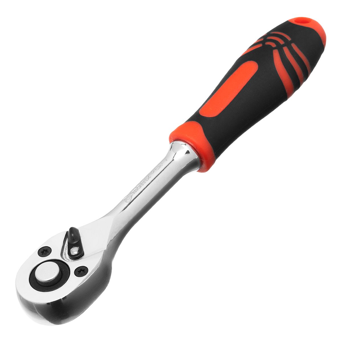 - Быстрая замена головок — кнопка сброса на трещотке позволяет мгновенно снять насадку.