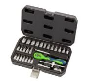 Набор инструментов Сибртех 13392, поставляющийся в пластиковом кейсе, состоит из 29 предметов с присоединительным размером 1/4", предназначенных для работы с резьбовыми соединениями. В комплект поставки входят кардан, удлинитель и вороток, упрощающие работу в труднодоступных местах. Набор будет полезен автолюбителю и домашнему мастеру.