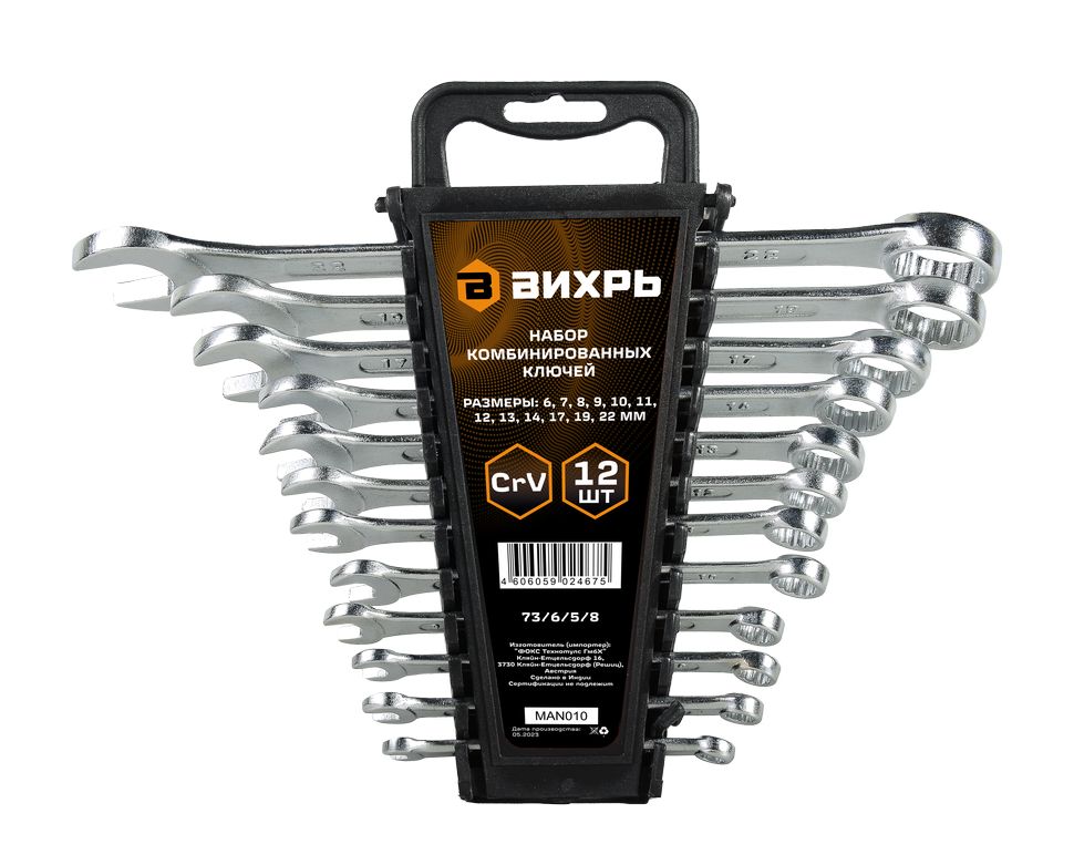 Набор комбинированных ключей 12 шт. 6 - 22 Вихрь