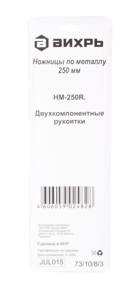Ножницы по металлу 250 мм., НМ-250R, правый рез, Вихрь