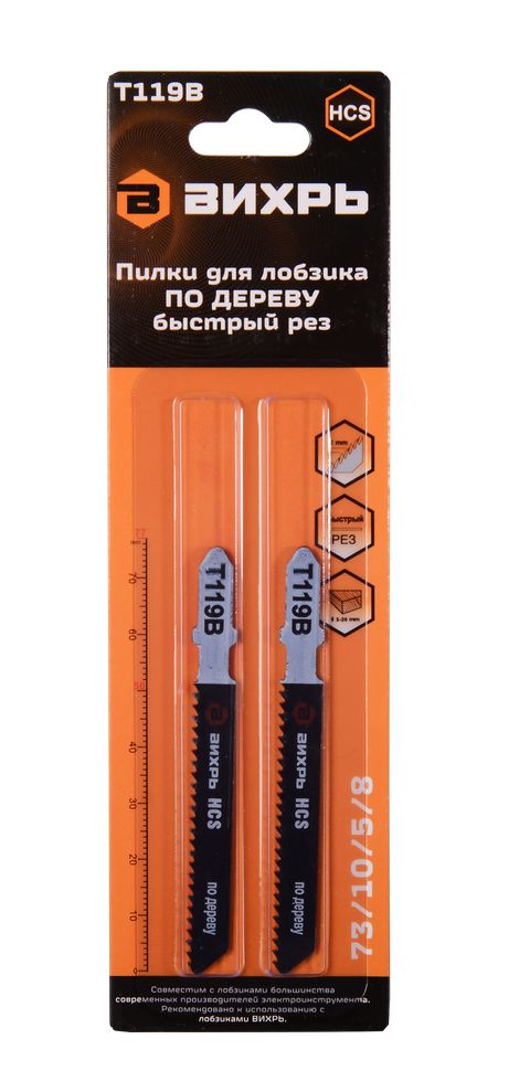 Пилки для лобзика ВИХРЬ Т119В по дереву, быстрый рез